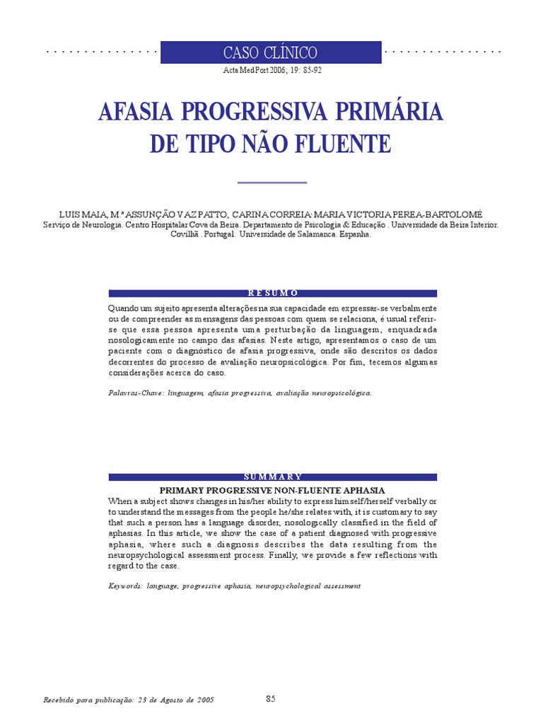 A peoa que o têm podem ter proble. La afasia progresiva primaria (app) es un sndrome clnico que se caracteriza por la degeneracin de las regiones del lenguaje en el hemisferio dominante, que determina una prdida progresiva del lenguaje (mesulam, 1982, 2001). L'afasia progressiva primaria, a differenza della normale afasia, sintomo di alcune malattie, è una patologia degenerativa di causa pressoché sconosciuta, che interessa le persone adulte ed è costituita da una lenta e progressiva comparsa di disturbi del linguaggio. O que é afasia progressiva primária. A afasia progressiva primária (app) é uma síndrome clínica diagnosticada quando três critérios centrais são preenchidos.